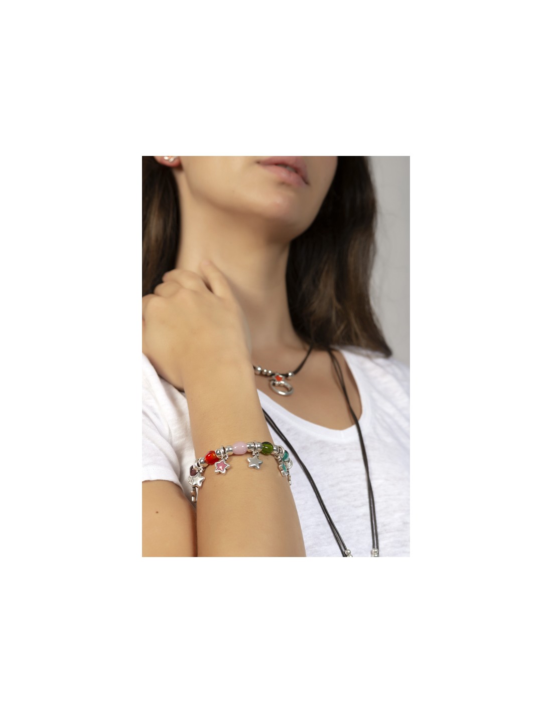 Pulseras de talla única Con cierre T de 3 aros: 17, 18 y 19 cm según la posición del aro del cierre a elegir. Con cierre T de 2 aros: 17 y 19 cm según la posición del aro. Con cierre de mosquetón: 16 a 20 cm según la posición del enganche en la cadena. Pulsera de muelle: hasta 20 cm. Pulsera rígida: Pulsera Elástica: hasta 20 cm. |