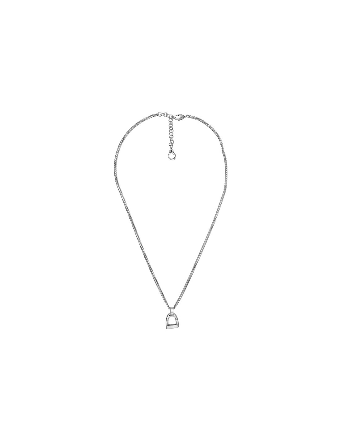 Sumérgete en la gracia equina con el Collar Potro de la colección Equus de Ciclón. Este collar corto, bellamente bañado en plata, presenta una encantadora forma de estribo que captura la esencia ecuestre con estilo. Descubre la fusión perfecta entre moda y pasión por la equitación con el exquisito Collar Potro de la colección Equus. Una joya única que refleja tu conexión con la majestuosidad del mundo ecuestre. Con una longitud ajustable de 50cm a 56cm, se adapta perfectamente a tu elegancia. El cierre mosquetón proporciona practicidad y seguridad.