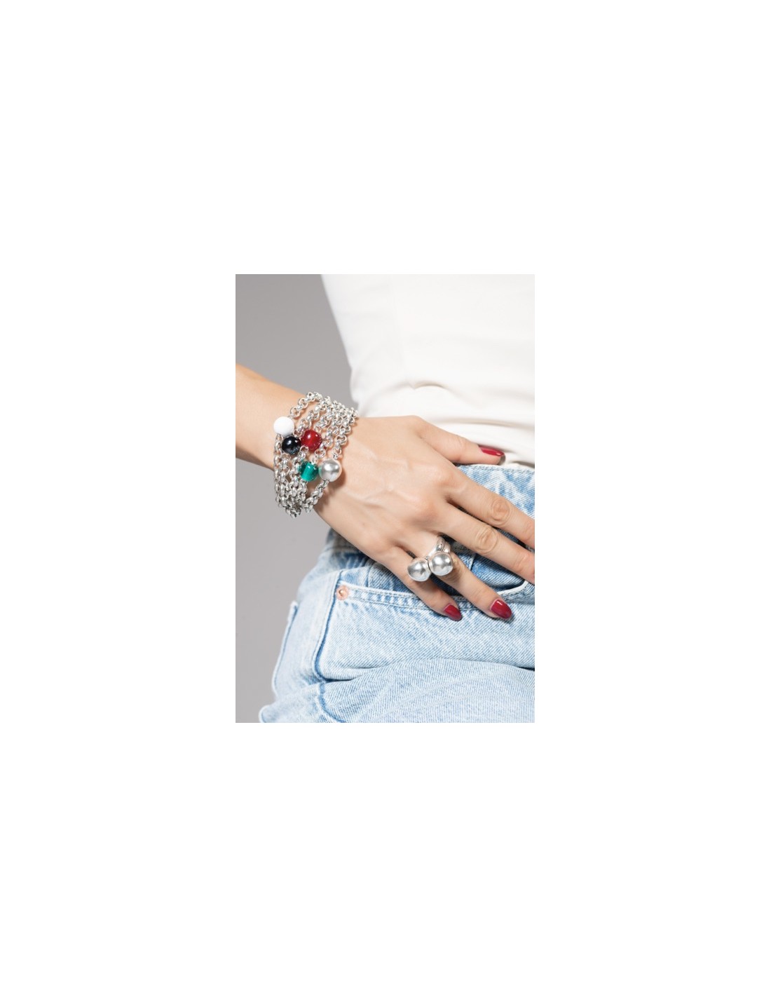 Pulseras de talla única Con cierre de hebilla:Regulable de 18 a 21,5 cm. Con cierre mosquetón:Hasta 22 cm.. |