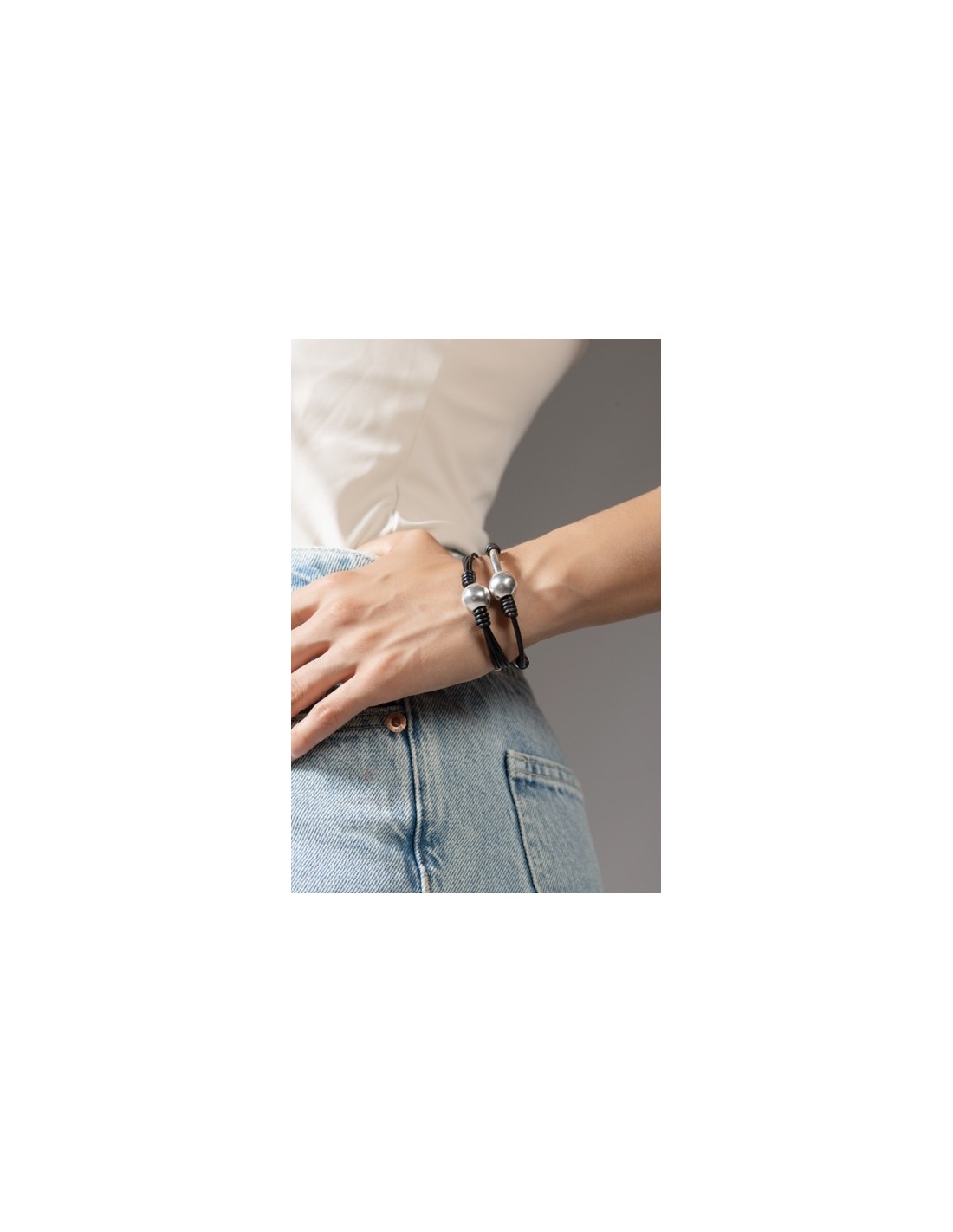 La Pulsera Phobos combina cuero con esferas y tubos bañados en plata que aportan dinamismo y textura al diseño. Su cierre de tipo pato con alargador permite ajustarla de 17 a 21 cm, convirtiéndola en una pieza versátil y contemporánea, ideal para cualquier look.