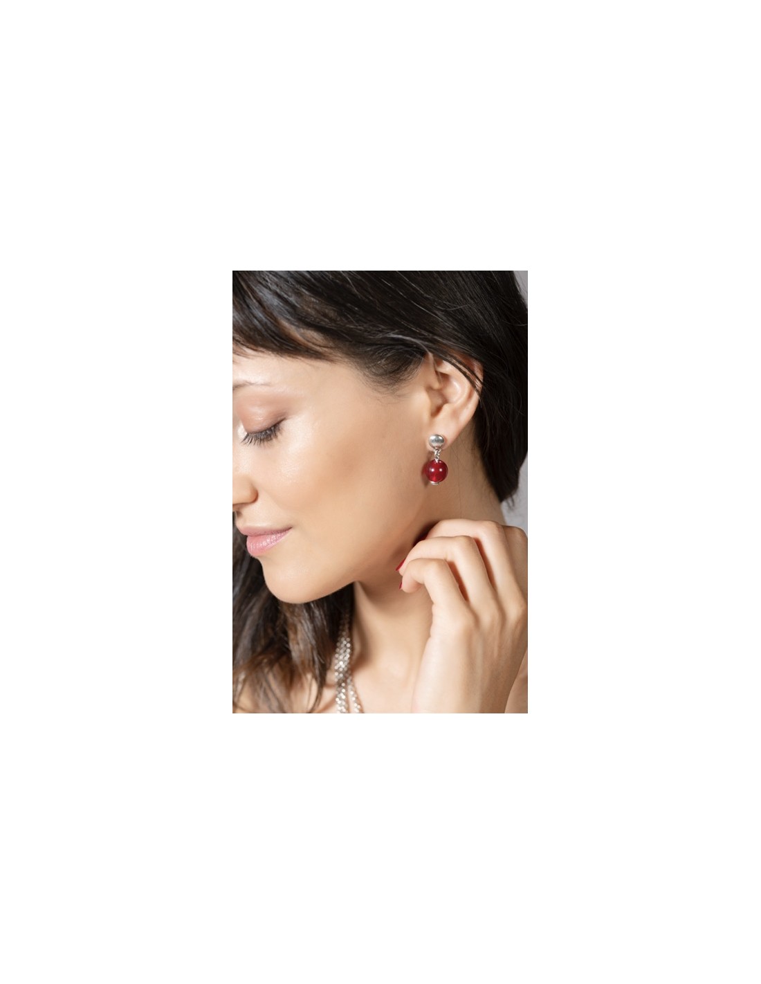 Los Pendientes Biela están bañados en plata y decorados con una esfera de cristal de Murano colgante, disponible en cuatro colores. Con cierre a presión y una medida de 2,5 cm, son un accesorio delicado y versátil que aporta un toque de color y sofisticación a cualquier look.