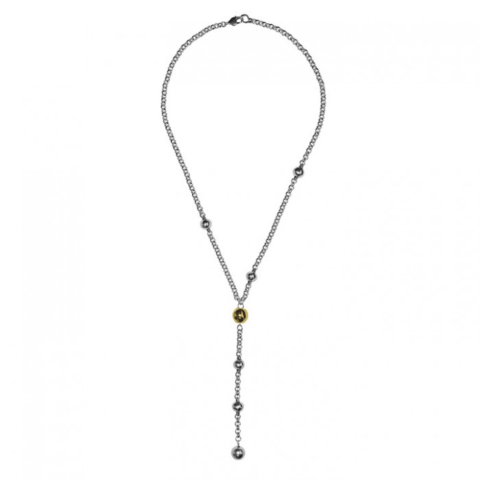 El Collar Kermes Gold es un collar largo estilo corbatero con cadena de eslabones bañada en plata. Combina motivos de esferas en metal con baño de plata u oro. Con cierre de mosquetón y longitud de 80 cm, es un collar versátil y sofisticado que aporta dinamismo y estilo contemporáneo a cualquier look.