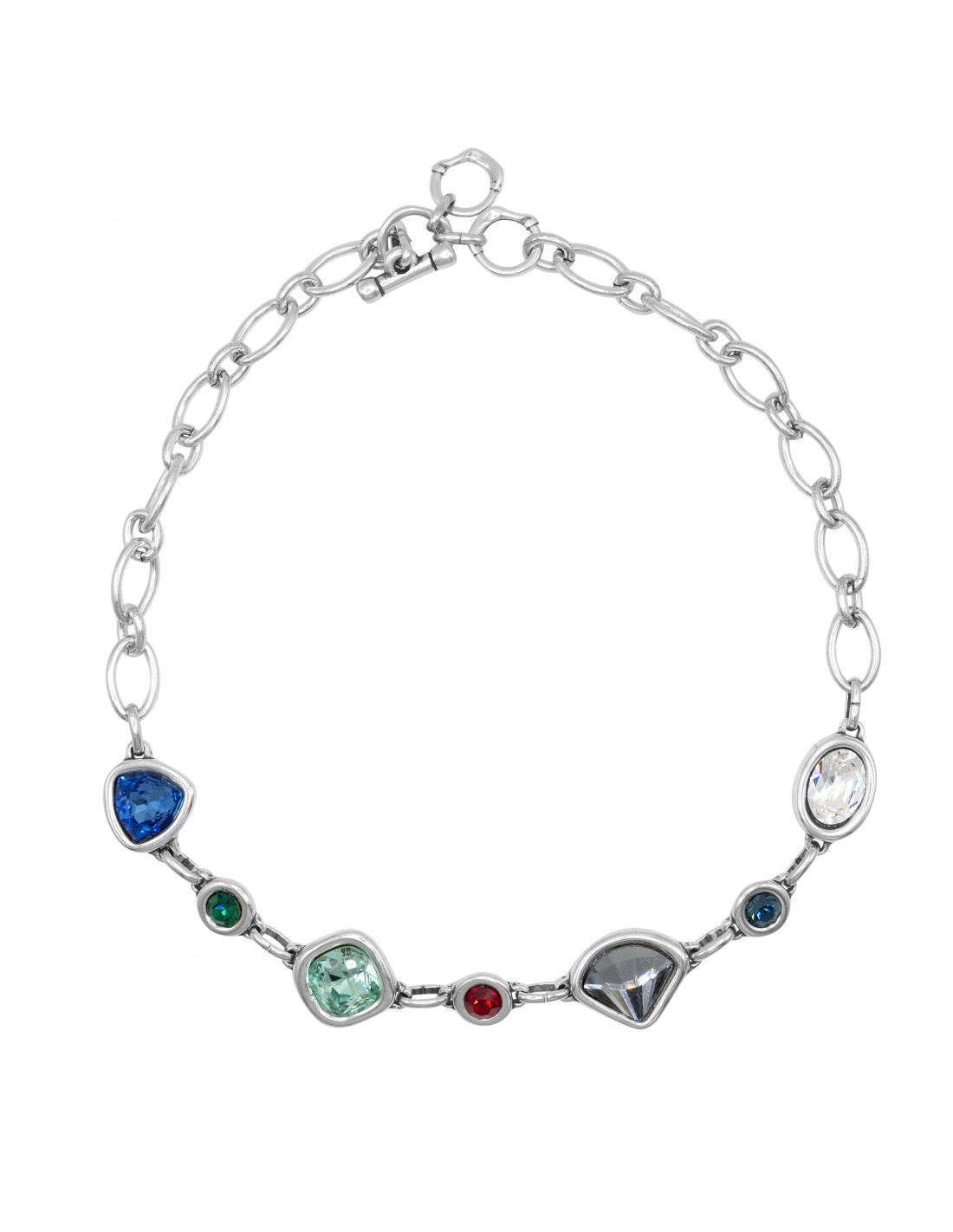Collar Diverso, collar corto en plata con motivos de 2 cm y piedras facetadas bicolor. Fabricado a mano en Madrid, ajustable de 40 a 45 cm con cierre en T, aporta brillo y estilo moderno.