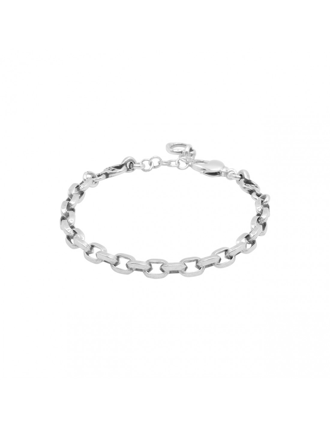 Una pulsera bañada en plata formada por una delicada cadena de eslabones ovalados pequeños que aporta ligereza y elegancia a la muñeca. Su brillo sutil refleja la luz con naturalidad, mientras el cierre de mosquetón garantiza seguridad y comodidad al llevarla. Fabricada artesanalmente en Madrid, destaca por sus acabados cuidados y su diseño refinado. Ajustable de 17 a 20 cm, es perfecta para acompañar el día a día con un estilo elegante y discreto o para regalar con intención.