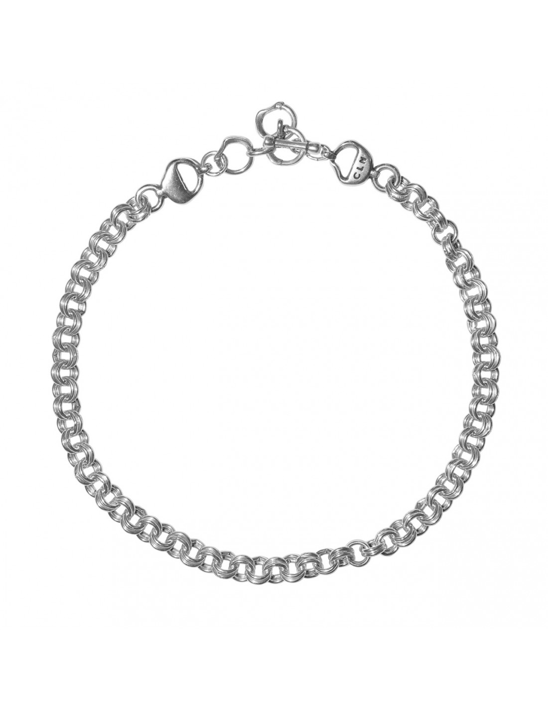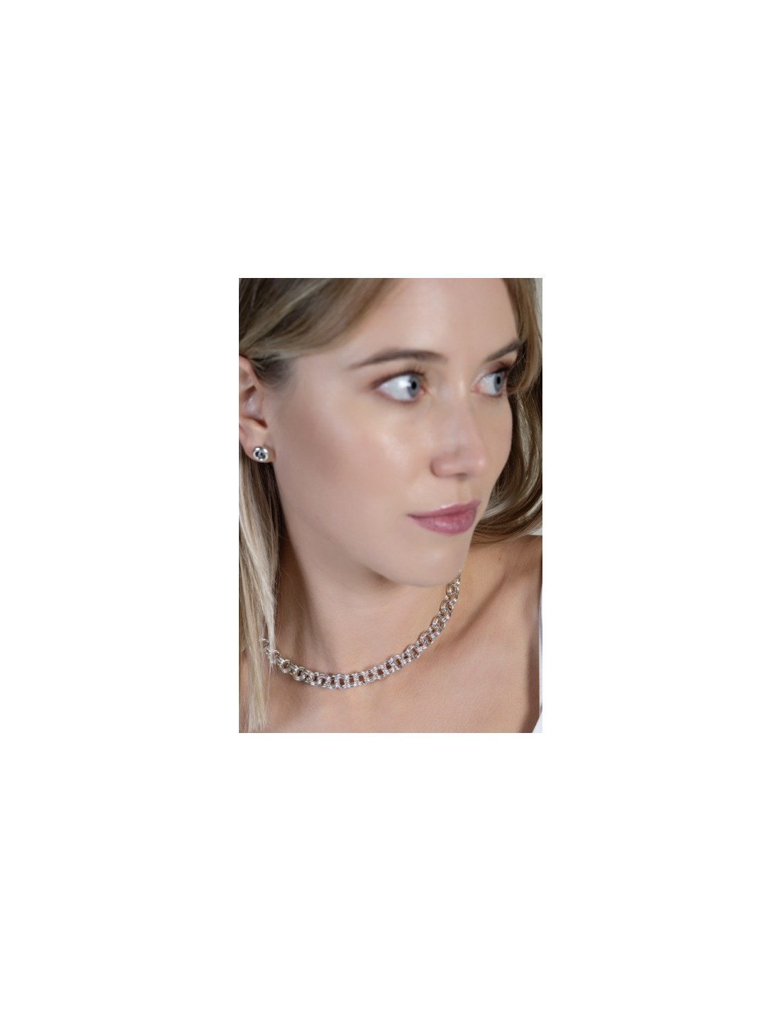 Collar Pauline combina doble cadena, motivo circular y baño en plata en un diseño artesanal hecho en Madrid. Ajustable y ligero, aporta brillo elegante y carácter moderno, ideal para lucir a diario o regalar con intención.