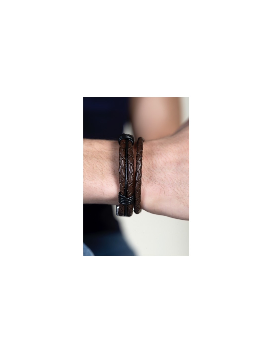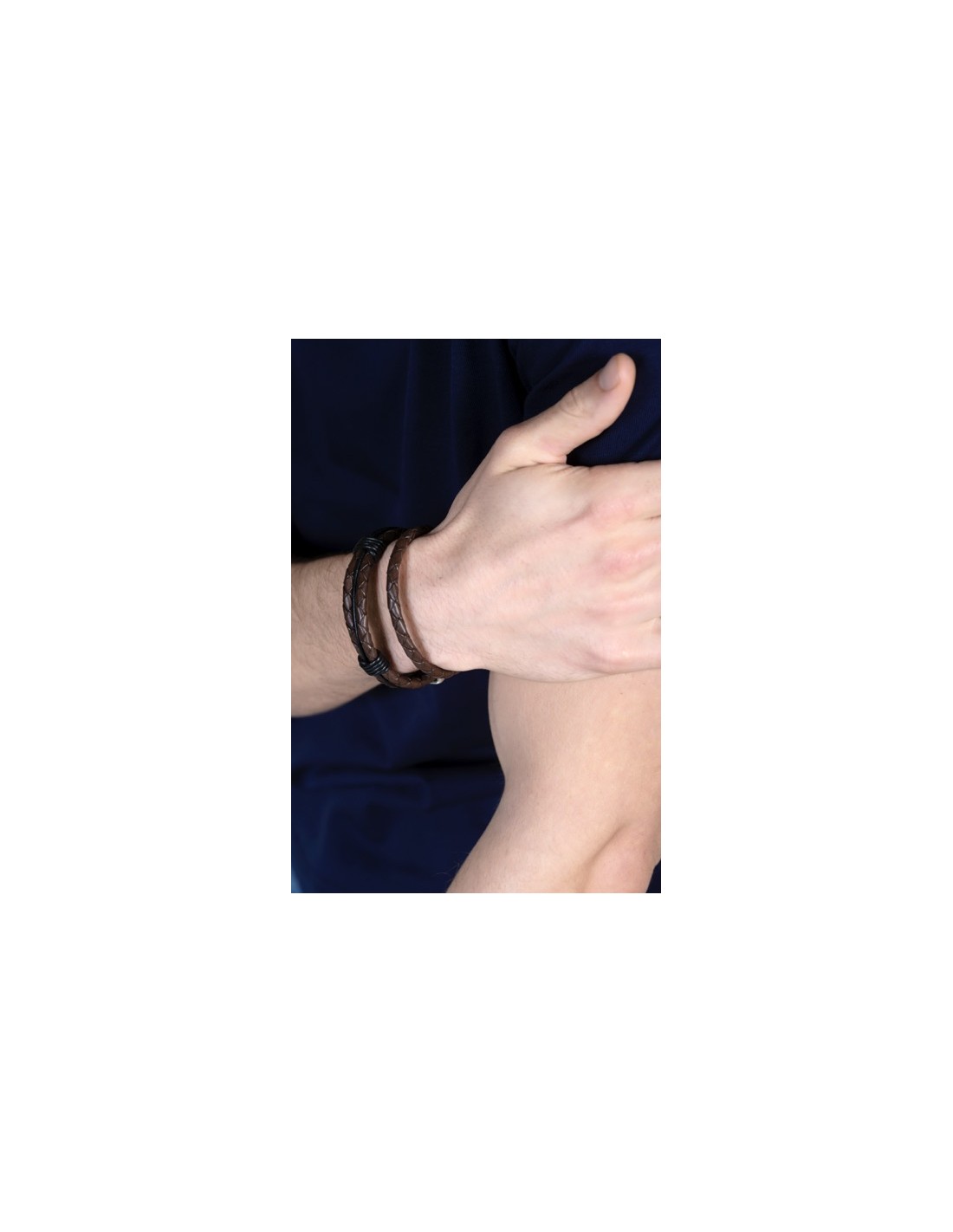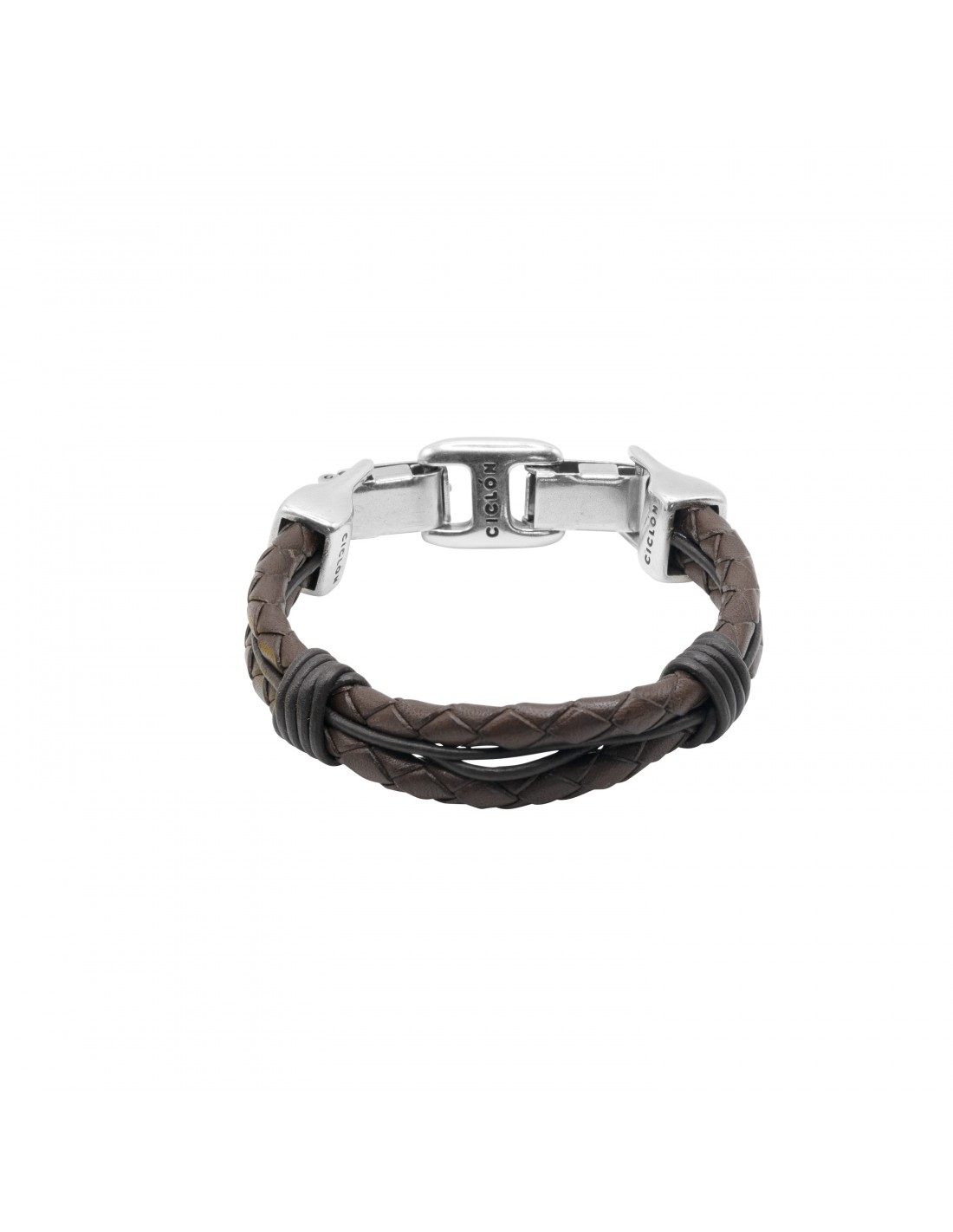 Diseño artesanal en cuero trenzado doble que envuelve la muñeca con textura y movimiento. El motivo de cuero liado añade un detalle de sofisticación y brillo discreto gracias al baño de plata. Fabricada en Madrid, está disponible en dos tallas y cuenta con cierre de pato y alargador para un ajuste cómodo y seguro. Una pulsera que combina estilo y personalidad, ideal para llevar a diario o regalar con significado.