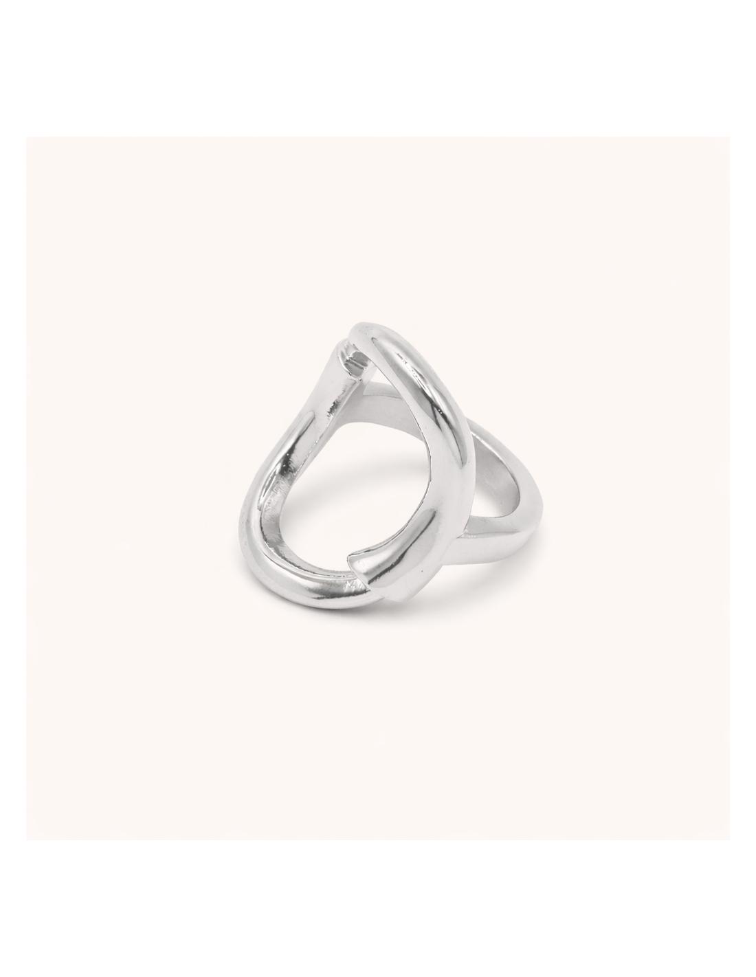 Anillo Bucle. Con su forma de óvalo, este anillo aporta un toque de movimiento y carácter al look. Su baño de plata le confiere un brillo delicado y contemporáneo. Fabricado artesanalmente en Madrid, está disponible en cuatro tallas para un ajuste cómodo y personalizado. Una joya que combina sencillez y estilo, perfecta para lucir sola o acompañada, y para quienes buscan un detalle elegante y lleno de personalidad.