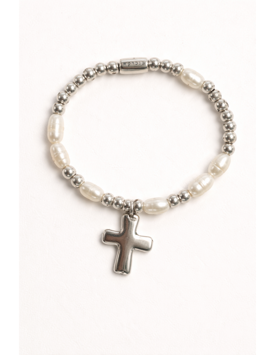 Pulsera Origen combina cuentas perladas y de acero en un diseño elástico que se adapta suavemente a la muñeca. Su cruz de 2,5 cm, bañada en plata, aporta un brillo discreto y un toque simbólico que evoca protección y estilo. Fabricada artesanalmente en Madrid, cada detalle refleja cuidado y dedicación. Disponible en dos tallas, es una pieza versátil que ilumina la mano y acompaña tus gestos, ideal para lucir sola o combinada con otras joyas de tu colección.