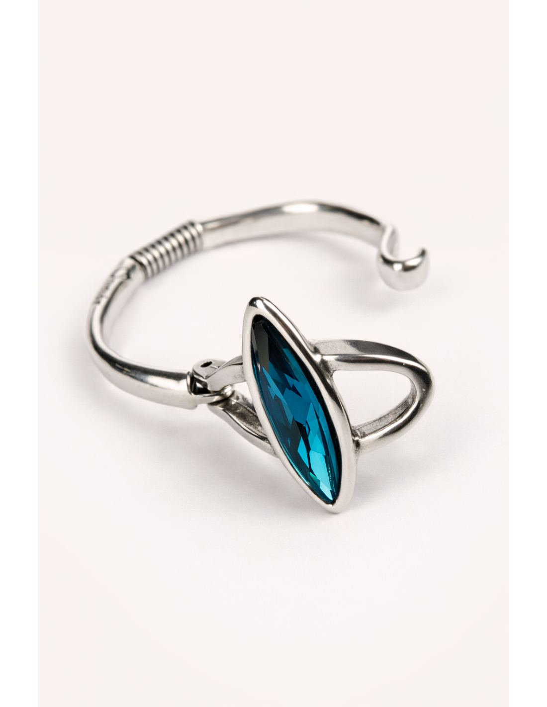 Pulsera Hortensia combina fuerza y luminosidad en un diseño rígido que resalta la muñeca. Su motivo de vaina, acompañado de una piedra facetada en tres colores, refleja la luz con delicadeza y aporta un brillo elegante. Bañada en plata y disponible en dos tallas, garantiza comodidad y ajuste perfecto. Fabricada artesanalmente en Madrid, esta pulsera es un accesorio sofisticado y contemporáneo, ideal para aportar un toque de estilo y personalidad a cualquier look.