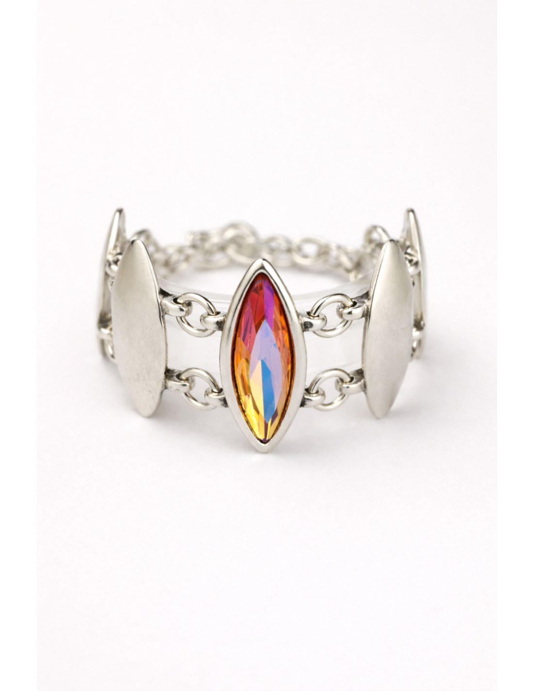 Pulsera Nerina combina presencia y elegancia en un diseño ancho que resalta la muñeca. Sus vainas de 4 cm, algunas con cristales facetados y otras lisas, bañadas en plata, crean un juego de luz y texturas sofisticado. Mide de 17 a 21 cm y se ajusta con cierre en forma de T, garantizando comodidad y seguridad. Fabricada artesanalmente en Madrid, es una pulsera pensada para aportar estilo contemporáneo y personalidad, perfecta para destacar con un toque refinado y luminoso.