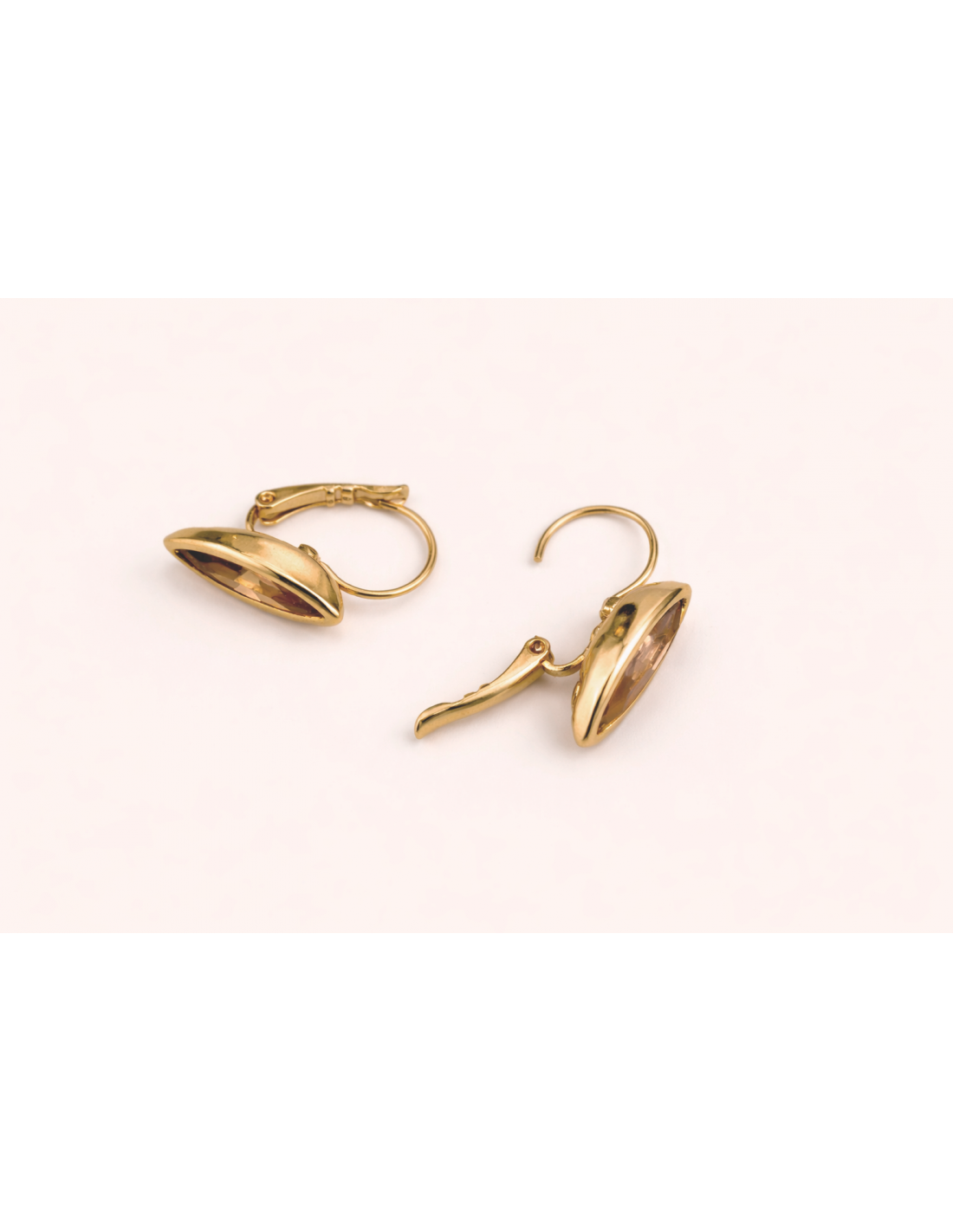 Pendientes Lotus Oro son unos pendientes midi de 2 cm bañados en oro, con delicada forma de vaina y piedra facetada que aporta un brillo suave y luminoso. Su diseño estilizado enmarca el rostro con elegancia y ligereza. Incorporan cierre tipo pato, cómodo y seguro para el uso diario. Fabricados artesanalmente en Madrid, reflejan cuidado en cada detalle y un estilo femenino y contemporáneo, ideales para acompañarte en tus momentos especiales o elevar tus looks cotidianos con un toque sofisticado.