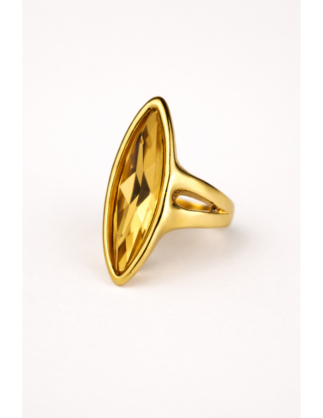 Anillo Cala Oro es un anillo maxi bañada en oro, con un motivo vaina que realza una piedra facetada, creando un sutil juego de luz y sofisticación. Su diseño imponente y elegante aporta presencia y estilo a cualquier look, manteniendo comodidad en la muñeca. Fabricado artesanalmente en Madrid, refleja cuidado y atención a cada detalle. Disponible en cuatro tallas, es un accesorio versátil que se puede lucir solo o combinar con otras piezas para un efecto más audaz y luminoso.
