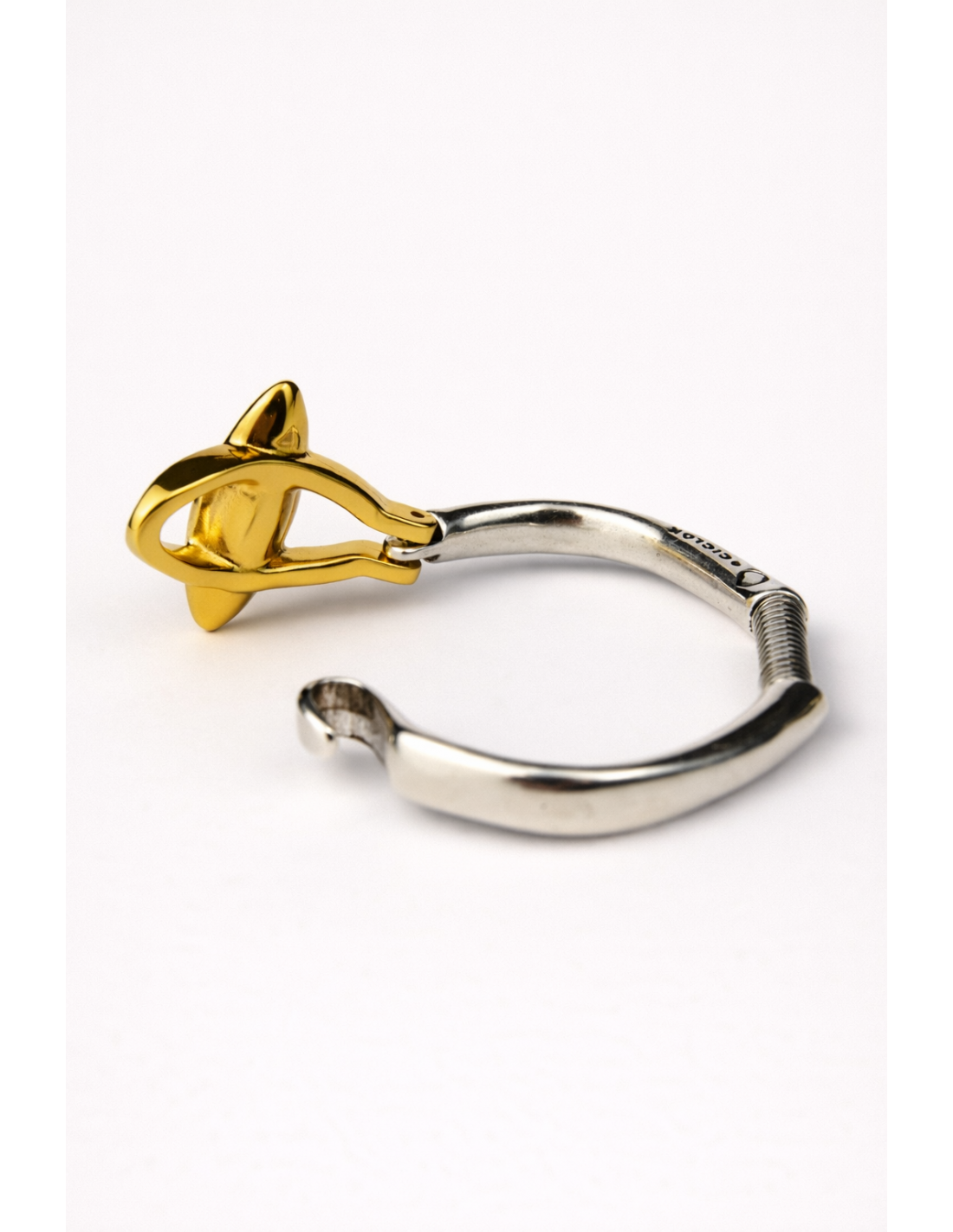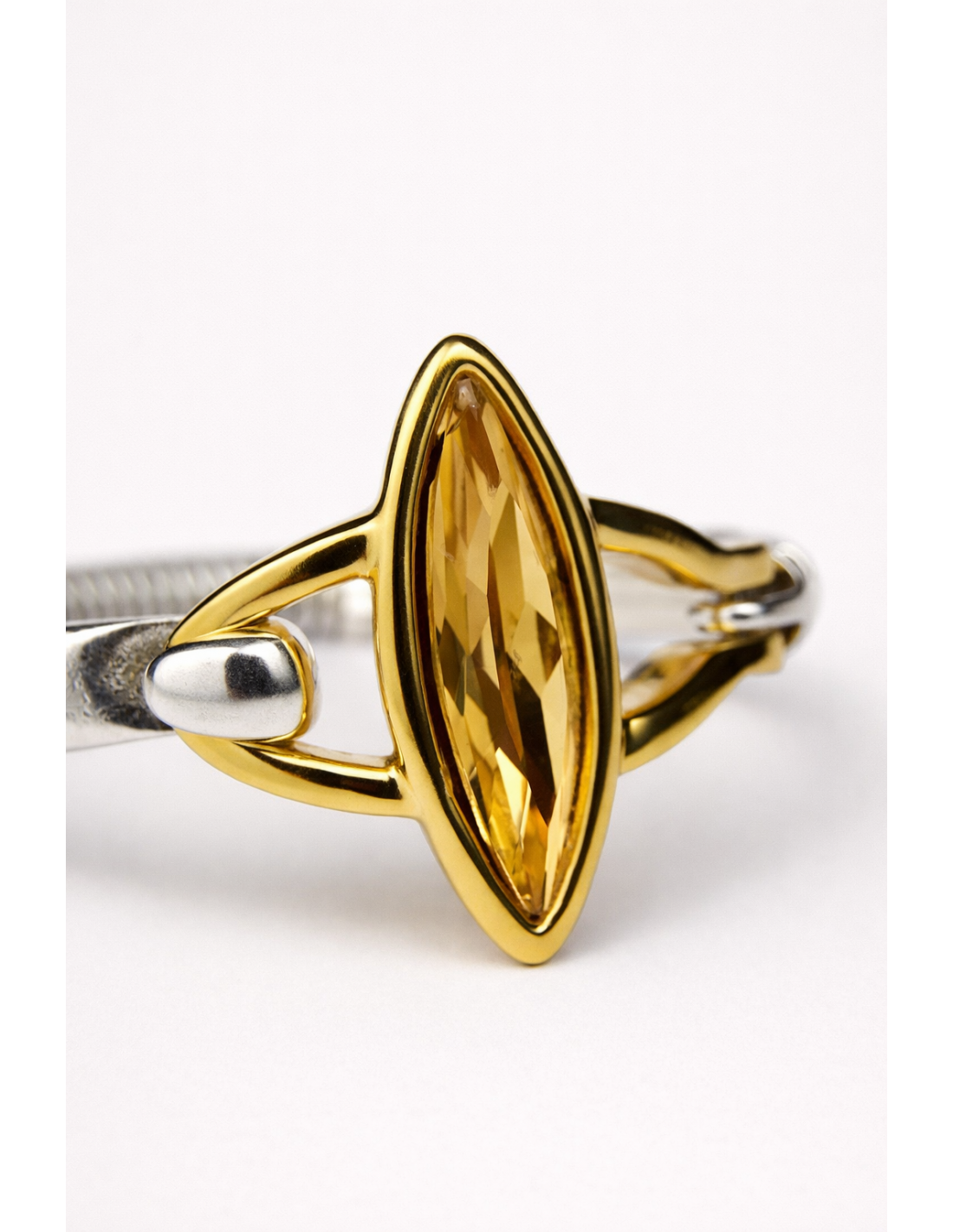 Pulsera Hortensia Oro es una pulsera rígida bañada en plata y oro, con un delicado motivo vaina que realza una piedra facetada, creando un sutil juego de luz y brillo. Su diseño elegante aporta sofisticación y presencia en la muñeca, mientras que su estructura rígida asegura comodidad y facilidad al colocarla. Fabricada artesanalmente en Madrid, refleja cuidado y atención a cada detalle. Disponible en dos tallas, es perfecta para lucir sola o combinar con otras piezas de la colección, aportando estilo y luminosidad a cualquier look.